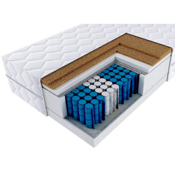 Materac ma dwie warstwy naturalnego kokosu, które usztywniają materac i zapewniają stabilne podparcie ciała. Kokos poprawia cyrkulację powietrza, działa antybakteryjnie i pomaga utrzymać materac suchy oraz higieniczny. Dzięki temu materac jest trwalszy i dłużej zachowuje swoje właściwości.