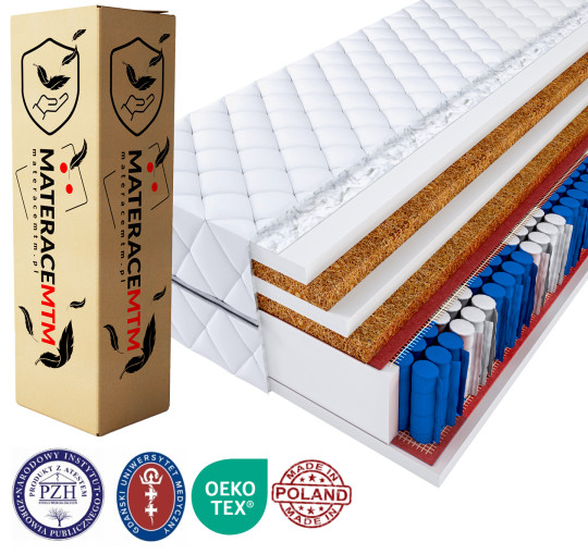 MateraceMTM zapewniają komfortowy i regenerujący sen, wspierając prawidłowe ułożenie kręgosłupa i redukując napięcie mięśniowe. Niezależne sprężyny kieszeniowe minimalizują przenoszenie ruchów, a pianka masująca i włókno kokosowe dbają o higienę i przewiewność materaca.