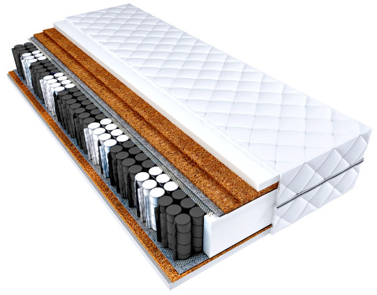 Materac został wyposażony w aż trzy warstwy naturalnego kokosu pozyskiwanego z włókien orzecha kokosowego. Wkładka ta nadaje konstrukcji wyraźną twardość, zapewnia stabilne podparcie ciała i pozwala na swobodną cyrkulację powietrza. Kokos ma właściwości antybakteryjne, pomaga utrzymać materac w suchości i higienie, a dodatkowo wzmacnia jego trwałość na lata.