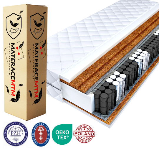 MateraceMTM zapewniają komfortowy i regenerujący sen, wspierając prawidłowe ułożenie kręgosłupa i redukując napięcie mięśniowe. Niezależne sprężyny kieszeniowe minimalizują przenoszenie ruchów, a pianka masująca i włókno kokosowe dbają o higienę i przewiewność materaca.